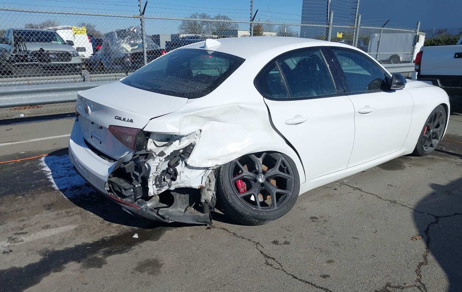 Alfa Romeo Giulia 2.0 280 kM importowana przez nas ze Stanów Zjednoczonych z napędem na tylne koła, ze szkodą w prawy tylny błotnik – kompleksowo wymieniliśmy prawe tylne zawieszenie oraz poszycie błotnika, dokonaliśmy kompleksowej inspekcji pojazdu, przeprowadziliśmy korektę lakieru oraz zmodyfikowaliśmy układ wydechowy.