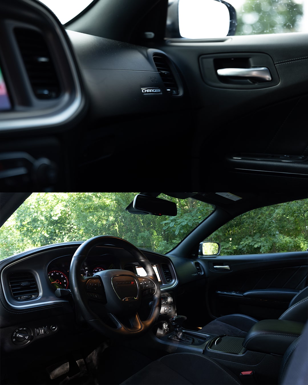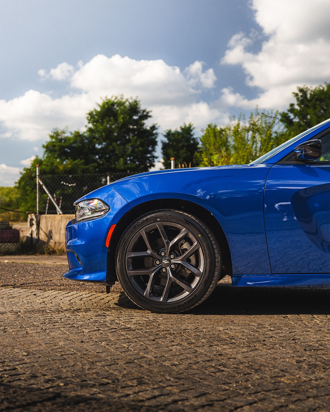 Dodge Charger GT z 2021 roku – uszkodzony w lewą stronę pojazdu – niegroźne uszkodzenie, które zakończyło się w planowanym budżecie. Do odnowy drzwi lewe tylne, lewe przednie, zdecydowaliśmy się zdemontować połamaną dokładkę przednią – auto przy kompleksowej inspekcji musiało otrzymać nowe elementy układu zawieszenia m.in. drążki, wahacze. Odzyskaliśmy również blask lakieru i jego głębie.